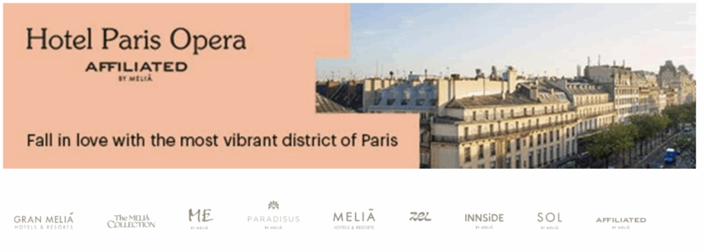 Discover our members in the windows of the Melià Paris Opéra hotel: Hôtel Paris O péra Affiliated by Melia: Address in Paris: 3 Bd Montmartre, 75002 Paris – click here