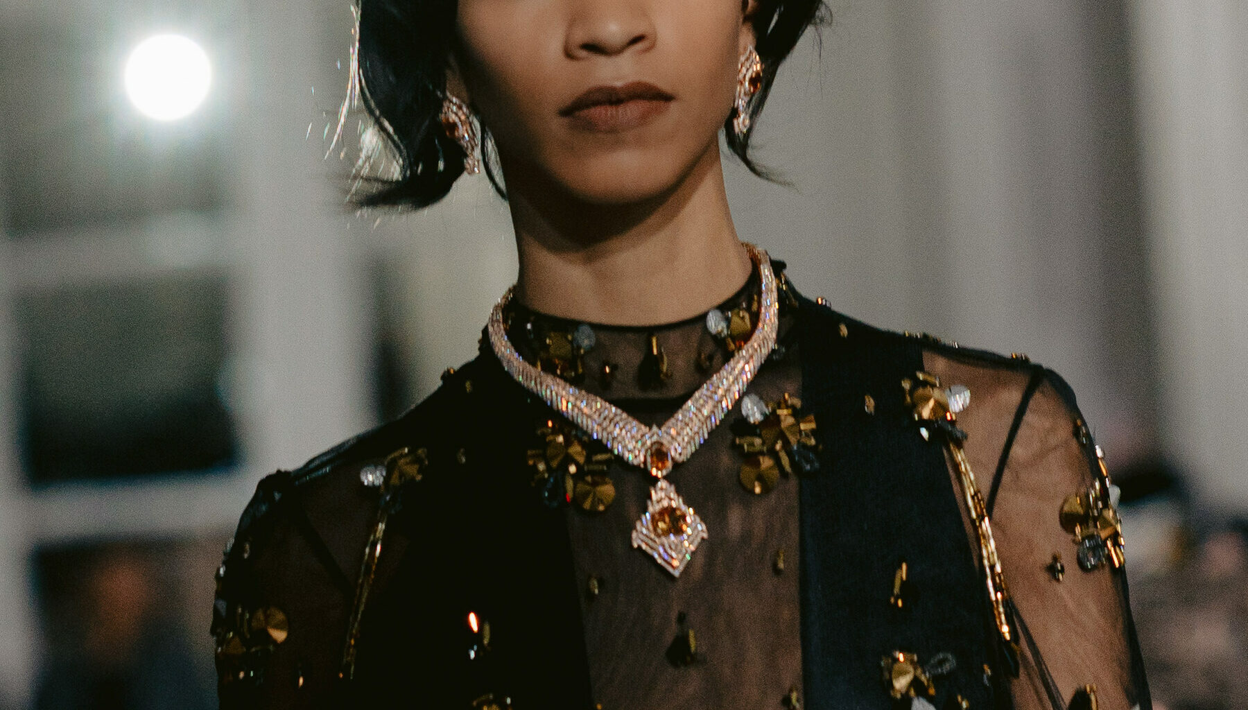 Amid the energy and glamour of the lights and runway, Tanishq’s statement pieces became the defining moment. Bold necklaces, dangling earrings, gold arm cuffs, and heirloom-scale diamonds shimmered with every step. Rather than serving as accessories, the jewelry was integral to the storytelling of the collection.